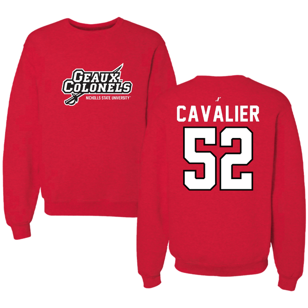 Nicholls State University Football Red General Crewneck - #52 Andrew Cavalier