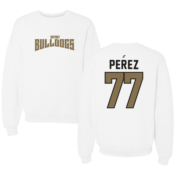 Bryant University Football White Classic Crewneck - #77 Anthony Perez