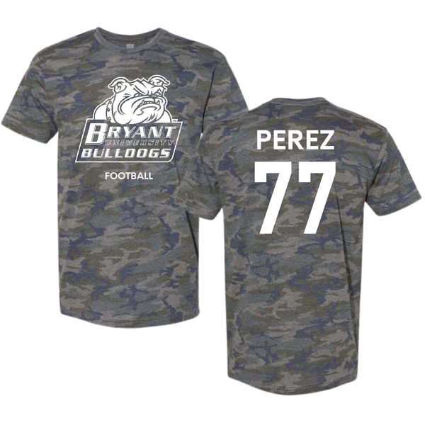 Bryant University Football Vintage Camo Tee - #77 Anthony Perez