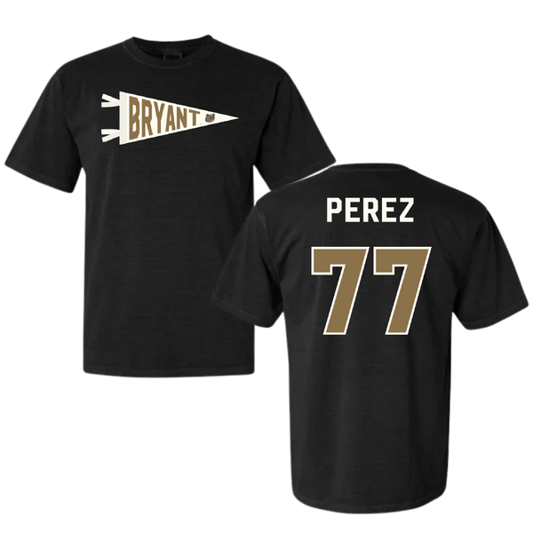 Bryant University Football Black Pennant Comfort Colors Tee - #77 Anthony Perez