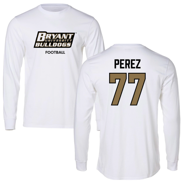 Bryant University Football White Long Sleeve - #77 Anthony Perez