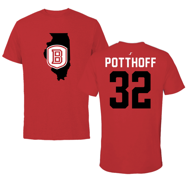 Bradley University Baseball Red State Tee - #32 Anthony Potthoff
