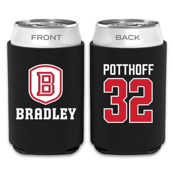 Bradley University Baseball Black Can Cooler - #32 Anthony Potthoff
