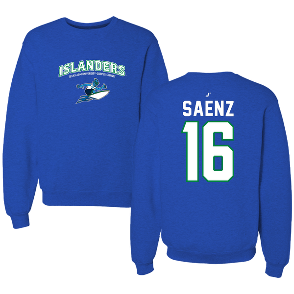 Texas A&M University-Corpus Christi Softball Blue Crewneck - #16 Ariella Saenz