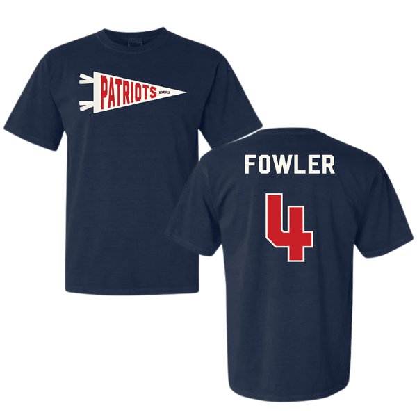 Dallas Baptist University Ice Hockey Navy Pennant Comfort Colors Tee - #4 Austin Fowler