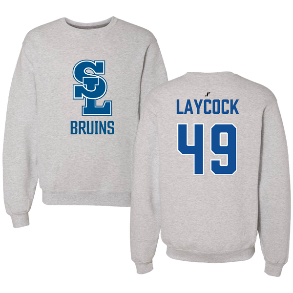 Salt Lake Community College Baseball Light Gray Bruins Crewneck - #49 Austin Laycock