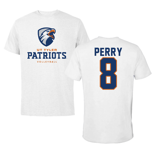 The University of Texas at Tyler Volleyball White Tee - #8 Autumn Perry