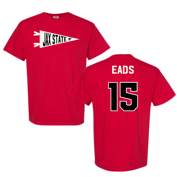Jacksonville State University Soccer Red Tee - #15 Baylee Eads