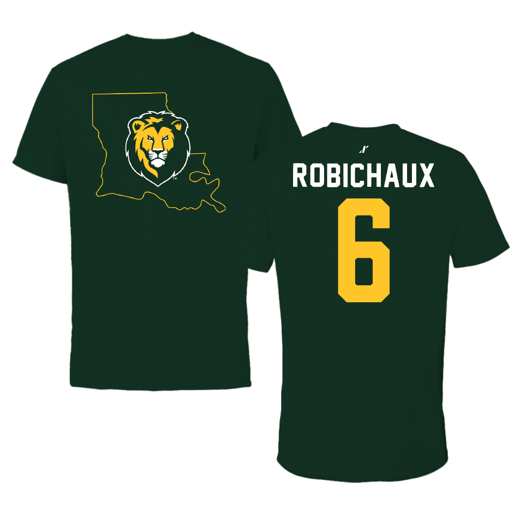 Southeastern Louisiana University Baseball Forest Green State Tee - #6 Ben Robichaux