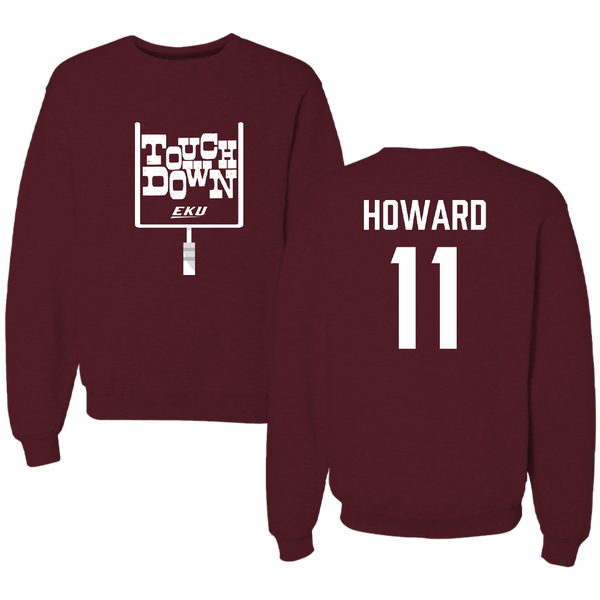 Eastern Kentucky University Football Maroon Touchdown Crewneck - #11 Blake Howard