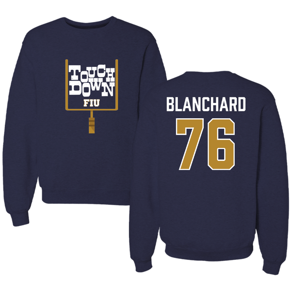 Florida International University Football Navy Touchdown Crewneck - #76 Bo Blanchard