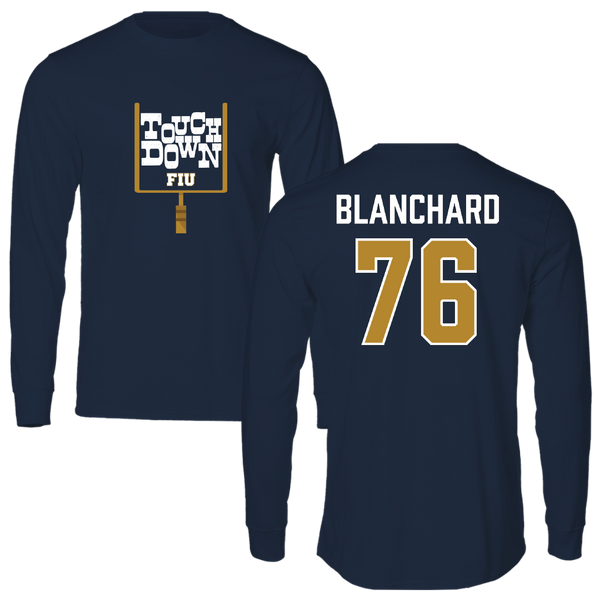 Florida International University Football Navy Touchdown Long Sleeve - #76 Bo Blanchard