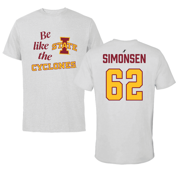 Iowa State University Football Light Gray Be Like Us Tee - #62 Braden Simonsen