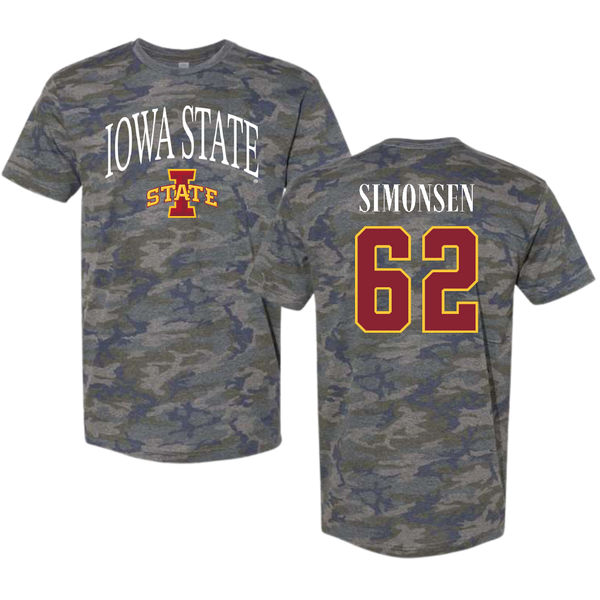 Iowa State University Football Vintage Camo Tee - #62 Braden Simonsen