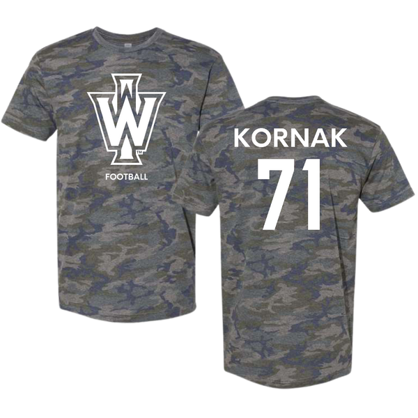 Illinois Wesleyan University Football Vintage Camo Tee - #71 Brady Kornak