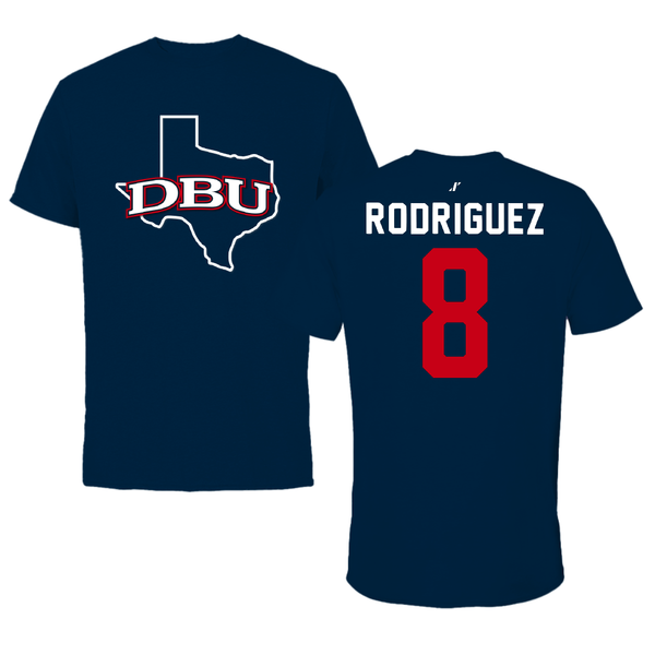 Dallas Baptist University Lacrosse Navy State Tee - #8 Brandon Rodriguez