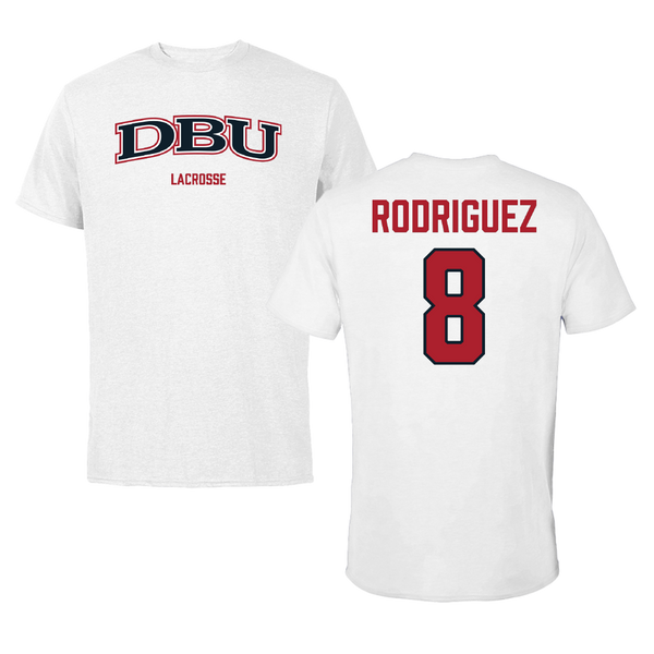 Dallas Baptist University Lacrosse (M) White Tee - #8 Brandon Rodriguez