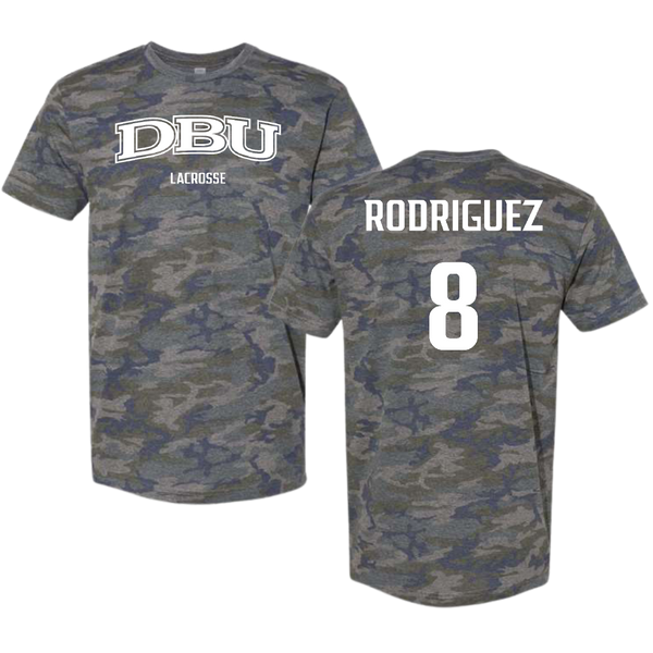 Dallas Baptist University Lacrosse (M) Vintage Camo Tee - #8 Brandon Rodriguez