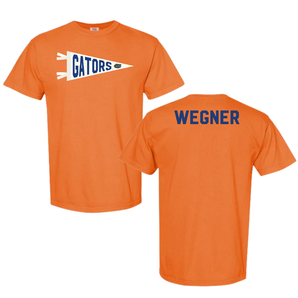 University of Florida Swimming & Diving Orange Pennant Comfort Colors Tee - Brandon Wegner