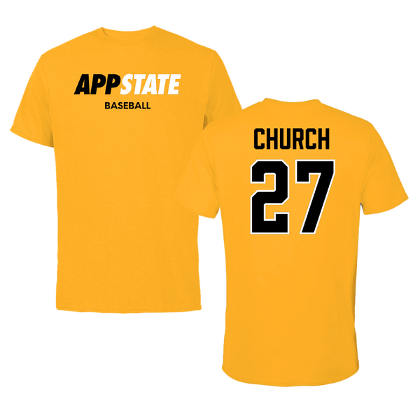 Appalachian State University Baseball Gold Tee - #27 Braxton Church