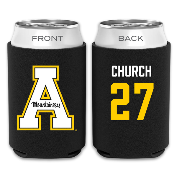 Appalachian State University Baseball Black Mountaineers Can Cooler - #27 Braxton Church