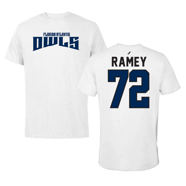 Florida Atlantic University Football White Classic Tee - #72 Brayden Ramey