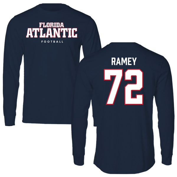 Florida Atlantic University Football Navy Block Long Sleeve - #72 Brayden Ramey