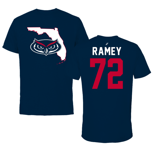 Florida Atlantic University Football Navy State Tee - #72 Brayden Ramey