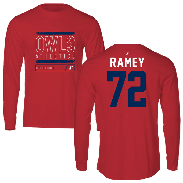 Florida Atlantic University Football Red Dominate Long Sleeve - #72 Brayden Ramey
