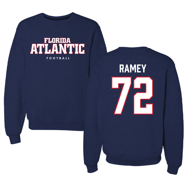 Florida Atlantic University Football Navy Crewneck - #72 Brayden Ramey