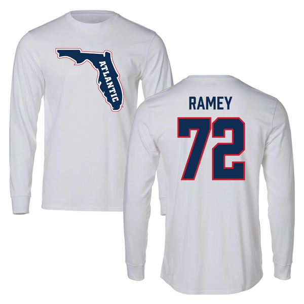 Florida Atlantic University Football White Long Sleeve - #72 Brayden Ramey