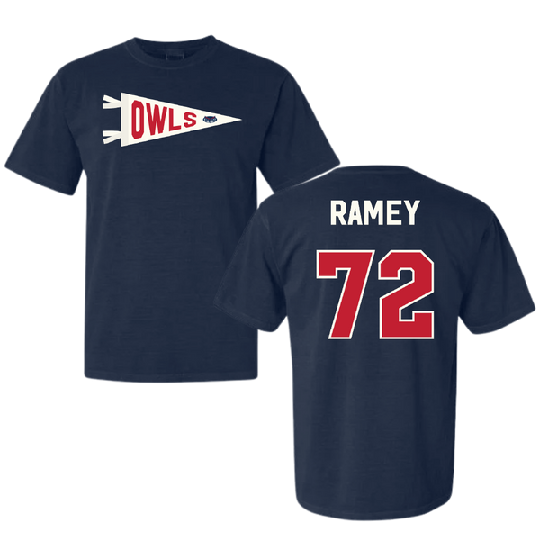 Florida Atlantic University Football Navy Pennant Comfort Colors Tee - #72 Brayden Ramey