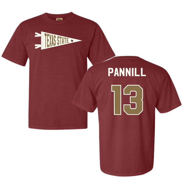 Texas State University Softball Maroon Pennant Comfort Colors Tee - #13 Braylin Pannill