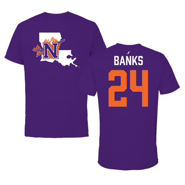 Northwestern State University Football Purple State Tee - #24 Brian Banks
