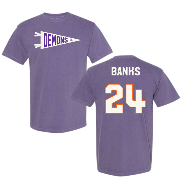 Northwestern State University Football Purple Pennant Comfort Colors Tee - #24 Brian Banks