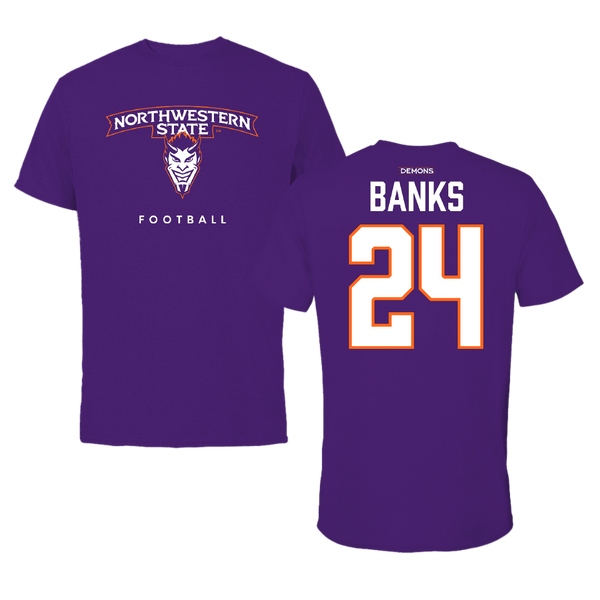 Northwestern State University Football Purple Touchdown Performance Tee - #24 Brian Banks