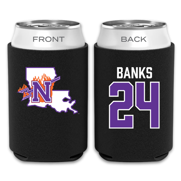 Northwestern State University Football Black Can Cooler - #24 Brian Banks