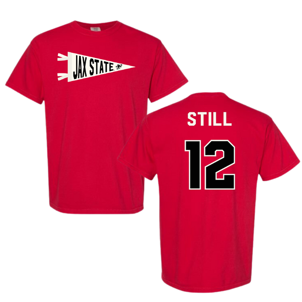 Jacksonville State University Soccer Red Pennant Comfort Colors Tee - #12 Brookelyn Still
