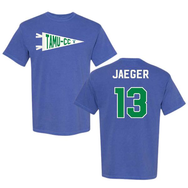 Texas A&M University-Corpus Christi Volleyball Blue Pennant Comfort Colors Tee - #13 Brooklyn Jaeger