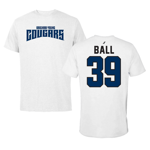 Brigham Young University Baseball White Classic Tee - #39 Nicholas Ball