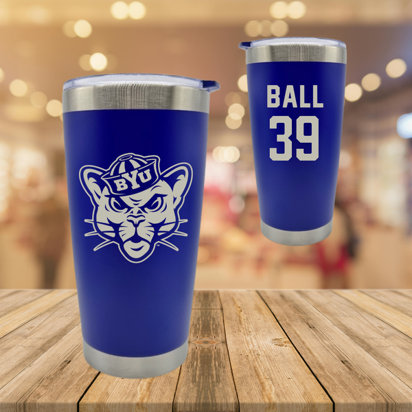 Brigham Young University Baseball Blue Stainless Steel Tumbler - #39 Nicholas Ball
