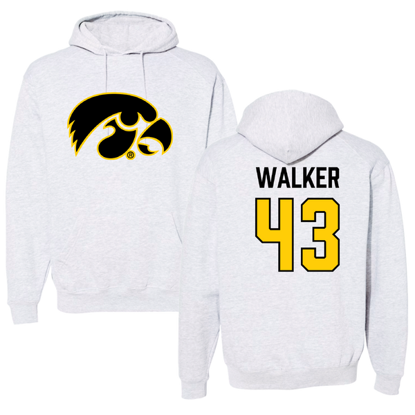 University of Iowa Baseball Light Gray Hoodie - #43 Bryson Walker