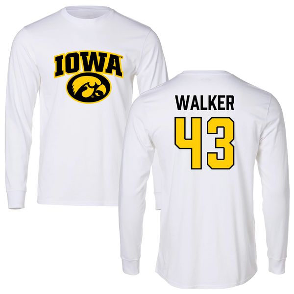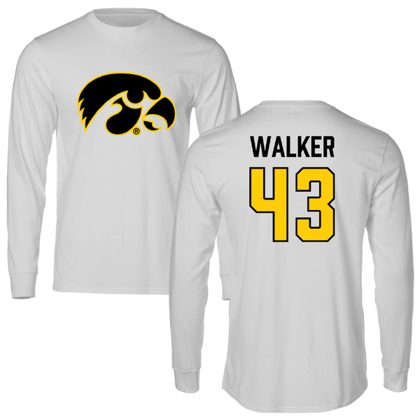 University of Iowa Baseball White Long Sleeve - #43 Bryson Walker