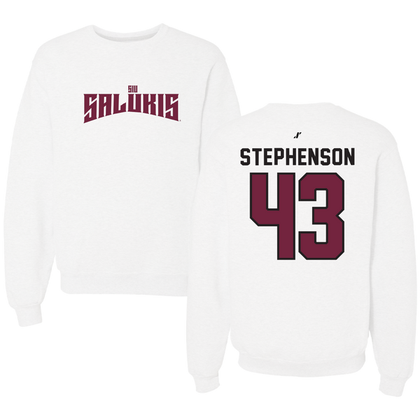 Southern Illinois University at Carbondale Football White Classic Crewneck - #43 Cade Stephenson