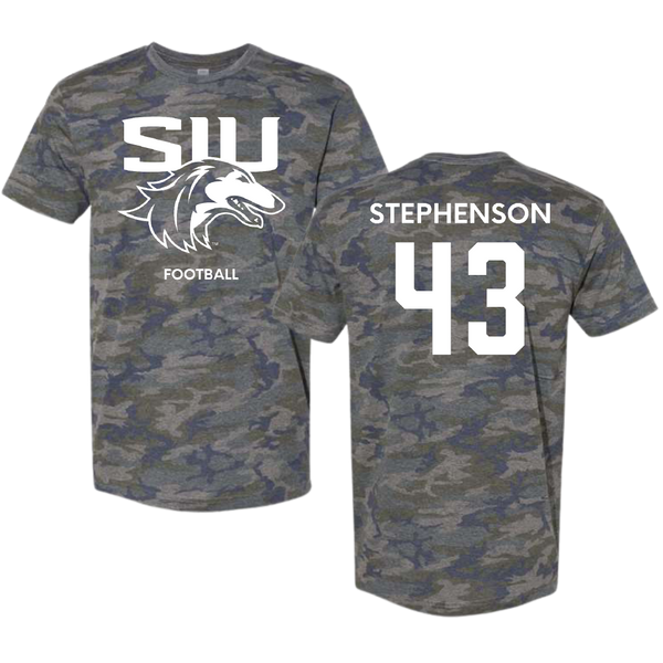 Southern Illinois University at Carbondale Football Vintage Camo Tee - #43 Cade Stephenson