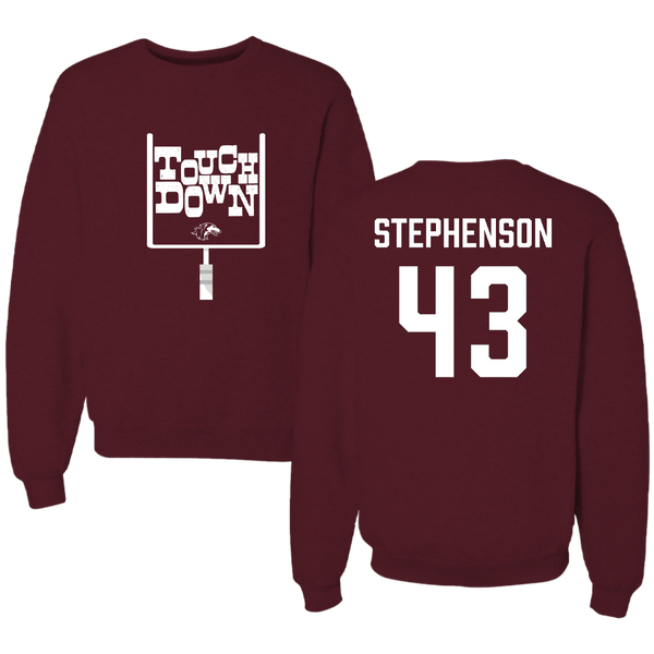 Southern Illinois University at Carbondale Football Maroon Touchdown Crewneck - #43 Cade Stephenson
