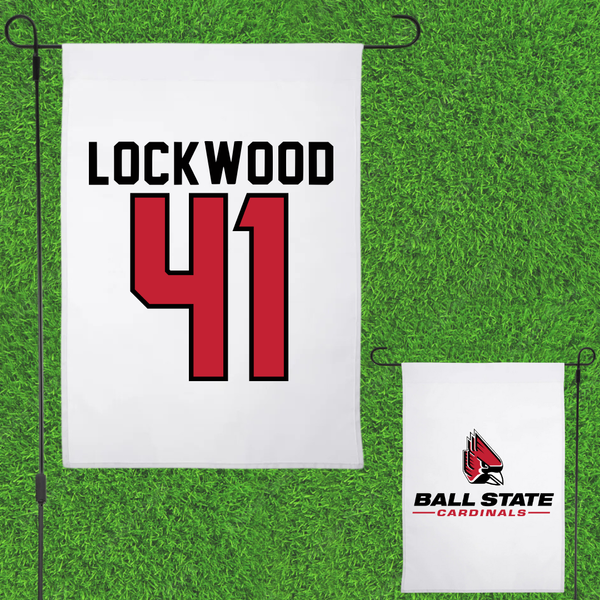 Ball State University Baseball White Garden Flag - #41 Caden Lockwood