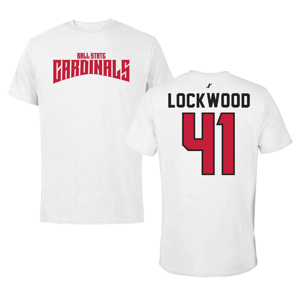 Ball State University Baseball White Tee - #41 Caden Lockwood