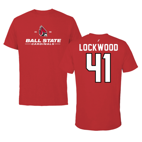 Ball State University Baseball Red General Tee - #41 Caden Lockwood