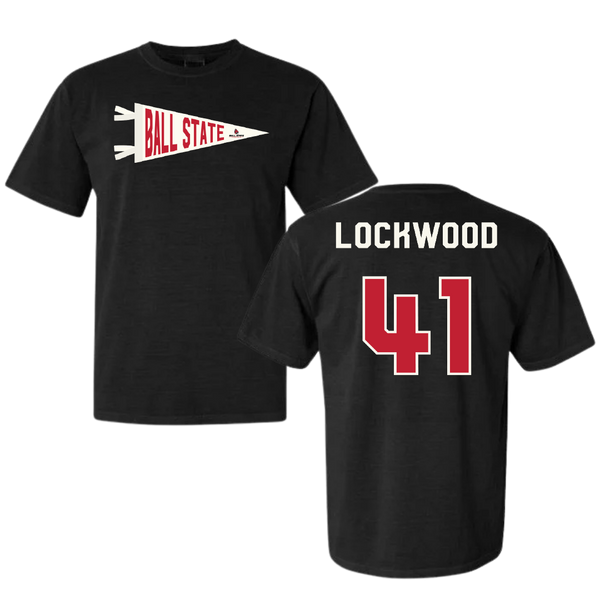 Ball State University Baseball Black Pennant Comfort Colors Tee - #41 Caden Lockwood